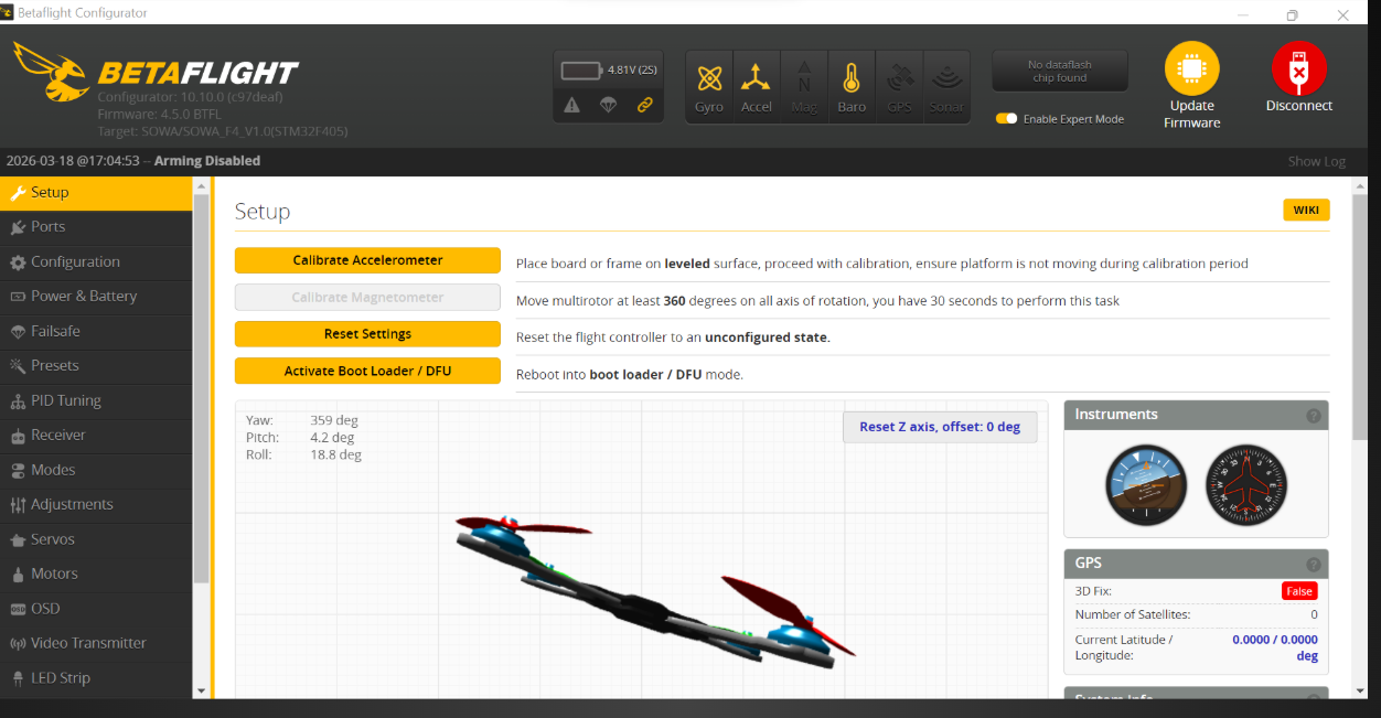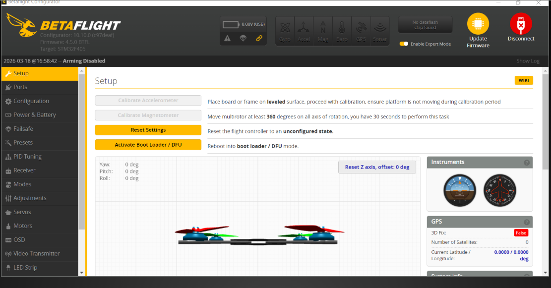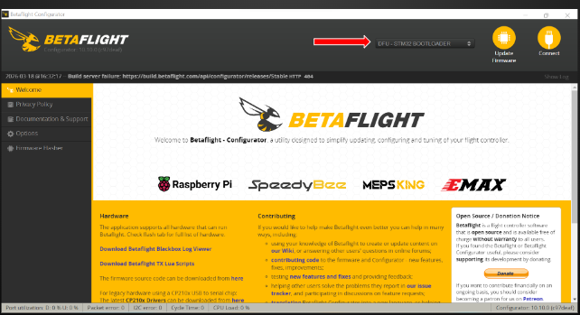 Now you can see the Betaflight Dashboard, shows FC is connected with software.