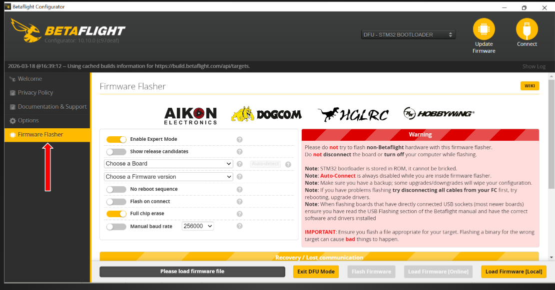 FLASHING BETAFLIGHT FIRMWARE