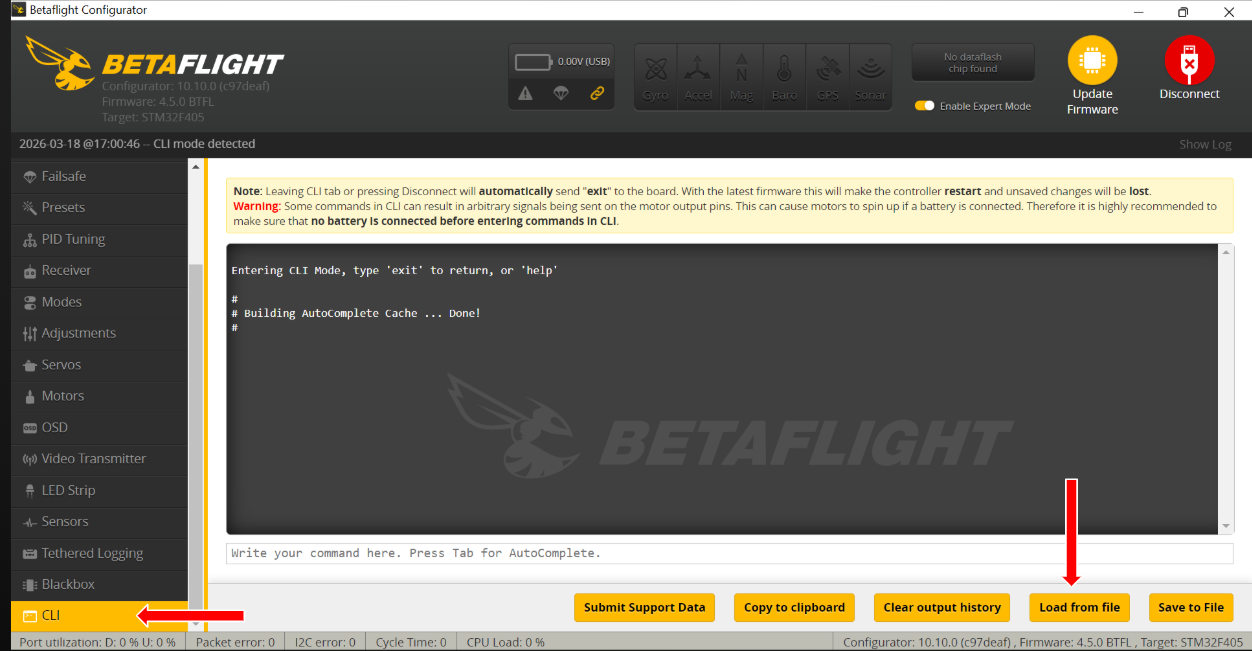 Now on CLI tab in left side menu then click on Load From File in bottom left side menu