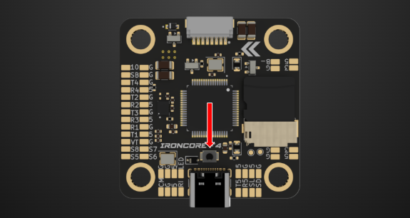 Press and hold the physical BOOT button on the flight controller.